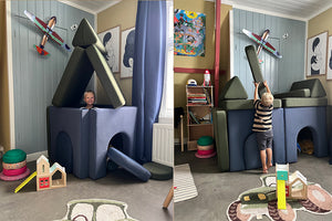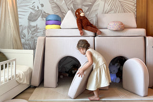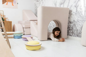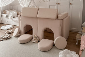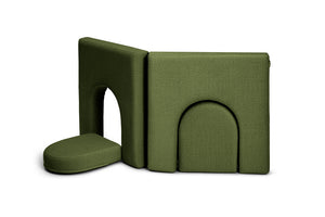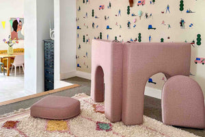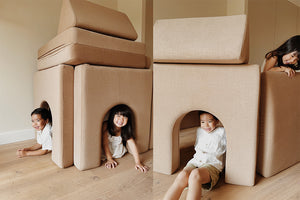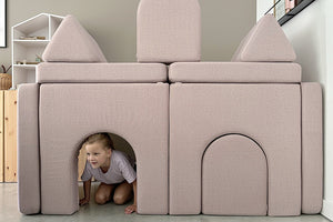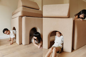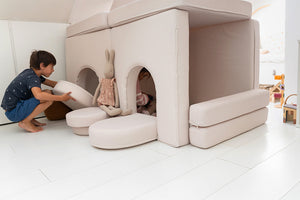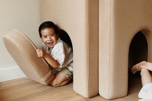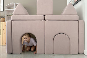 Les Arches Shappy permettent aux enfants de construire des châteaux, de se cacher sous les coussins du canapé et de transformer facilement le canapé en lit ou en assise surélevée.